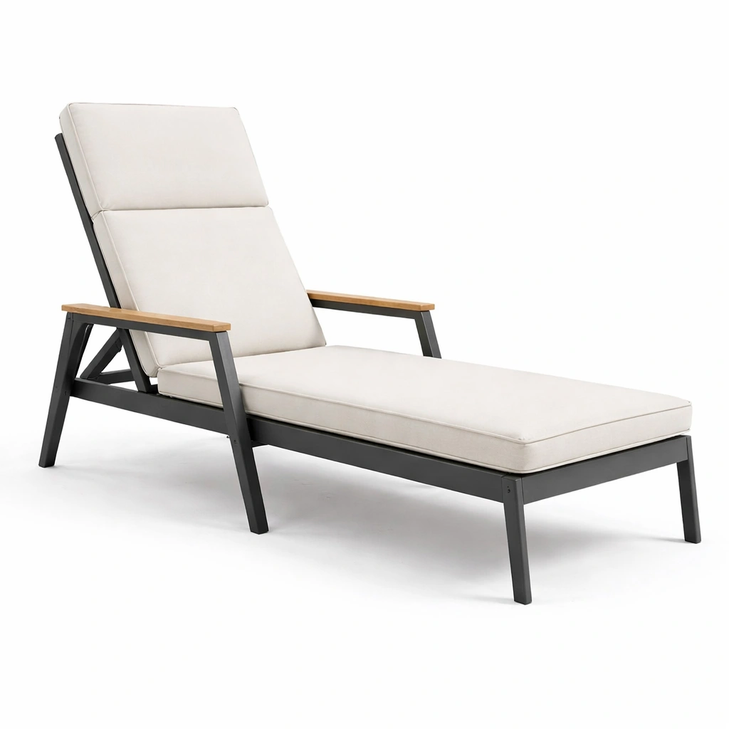Sdraio in alluminio e legno con cuscino crema