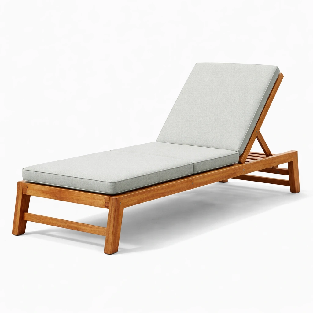 Struttura in legno di acacia resistente. Cuscini rivestiti in tessuto di poliestere. Lo schienale è regolabile per il massimo comfort.